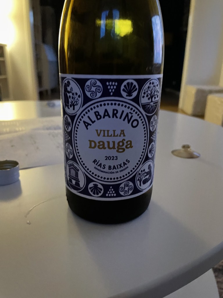 And with some late summer weather still hanging around we’ll start with a white. This is an Albariño grape, often found in Portugal & Spain but now also grown in California and Australia, although a lot of what was labeled as Albariño in Australia is actually thought to be something else. This one is Spanish, from Villa Dauga in the northwest and is super-light, crisp, summer white. It’s a great alternative to Sauvignon Blanc, if you fancy a change from that and goes really nicely with fish, white meats or just by itself. We had it Easter with scallops, which worked great, cutting through the rich, creamy shellfish.